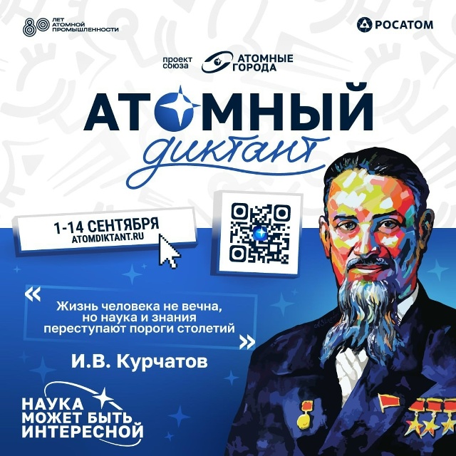 С 1 по 14 сентября обучающиеся 7, 8 классов школы под руководством учителя физики приняли активное участие во Всероссийской акции «Атомный диктант», организованной Союзом «Атомные города» при поддержке Госкорпорации «Росатом» . Проект направлен на популяризацию знаний об атомной отрасли, включая вопросы энергетики, экологии, безопасности и истории атомной промышленности.